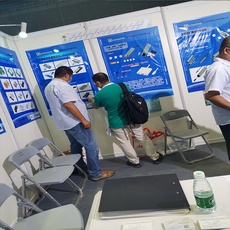 在參展過程中,王總積極帶隊為客戶講解所提出的問題,例如薄膜開關詳細生產問題,工廠生產實力日產量等,是否內設檢測部門等;也為客戶提供了創銘電子新生產的擴展塢產品,為客戶詳細講解其生產過程以及性能。
