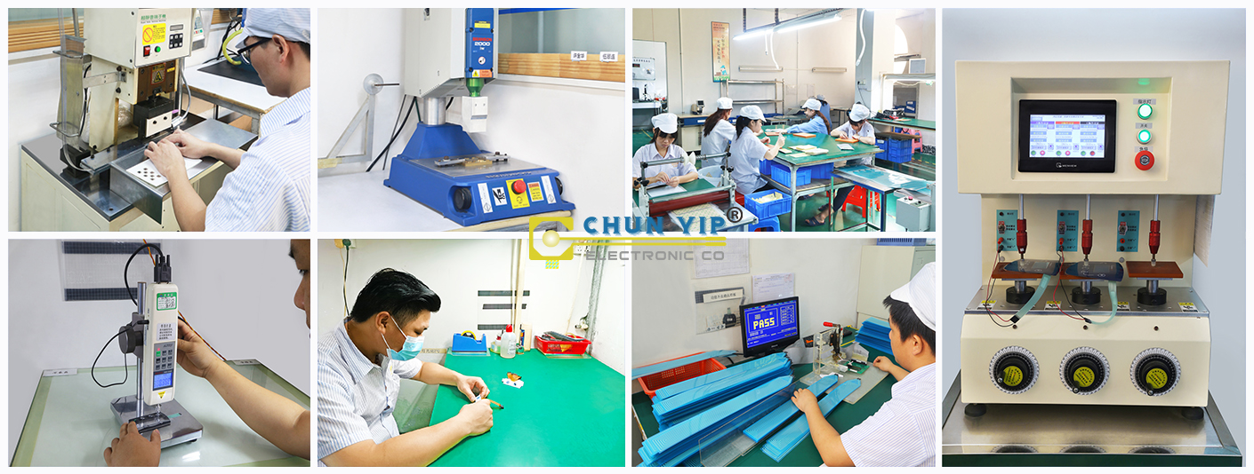 擁有全自動(dòng)打端子機(jī)1臺(tái)、半自動(dòng)打端子機(jī)2臺(tái)、手動(dòng)打端子機(jī)1臺(tái)、覆膜機(jī)4臺(tái)、全自動(dòng)打孔機(jī)1臺(tái)、半自動(dòng)打孔機(jī)2臺(tái)、點(diǎn)燈機(jī)3臺(tái)等;2條裝配流水線將面板層、墊片和電路封裝在一起,形成一個(gè)完整的層薄膜開(kāi)關(guān)。